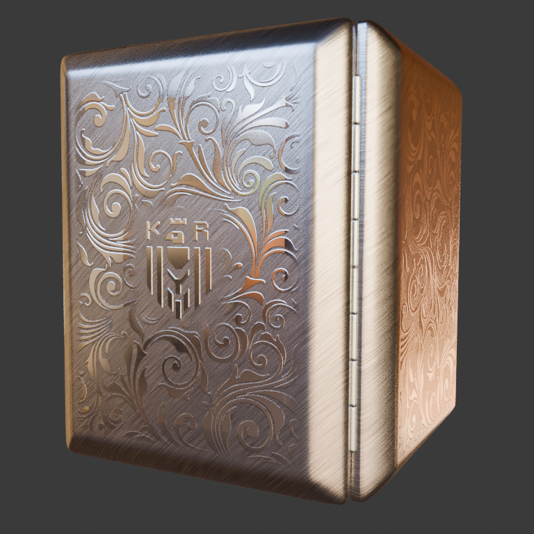 I have to say that from the previous post to this one, the cigarette case is looking quite epic. The clamp on the cigarette side it cool, if a little weird, and the one on the memorabilia side is functional, without hiding too much. I could put the crest on both halves of the case to save on texture space by making both halves identical…
