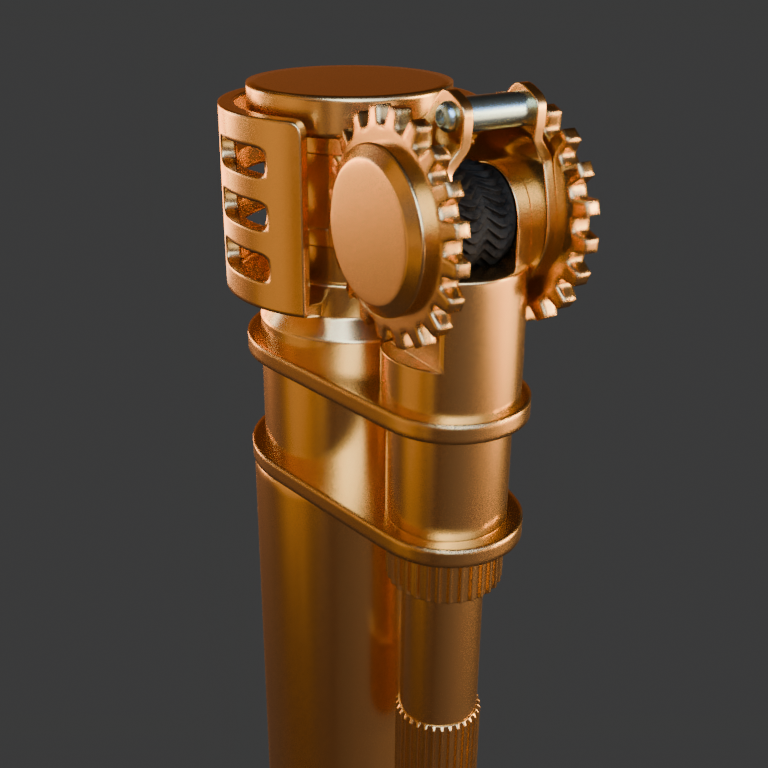 I’ve remodeled the trench lighter striker with a much smaller wheel as my reference (the zippo-style striker wheel was way too big), the main body & storm shield also got some love. This does simplify the model a bit, and I feel that it looks a bit more balanced. The assist lever also looks a lot better like this.