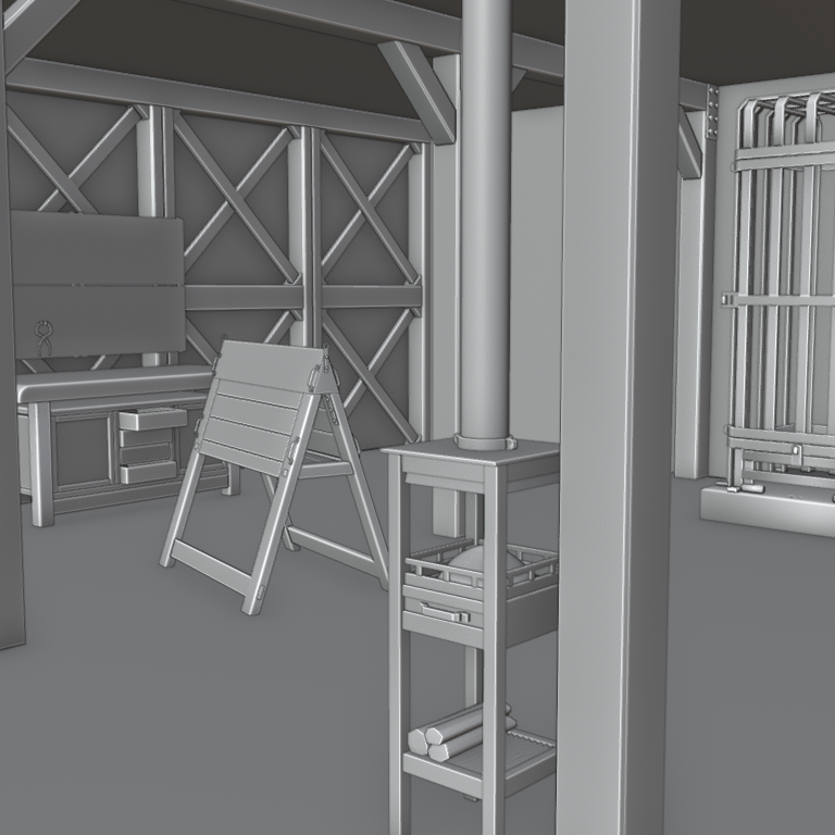 I’m slowly but surely filling my little “cellar” scene project with unfinished props, it is starting to look like something.